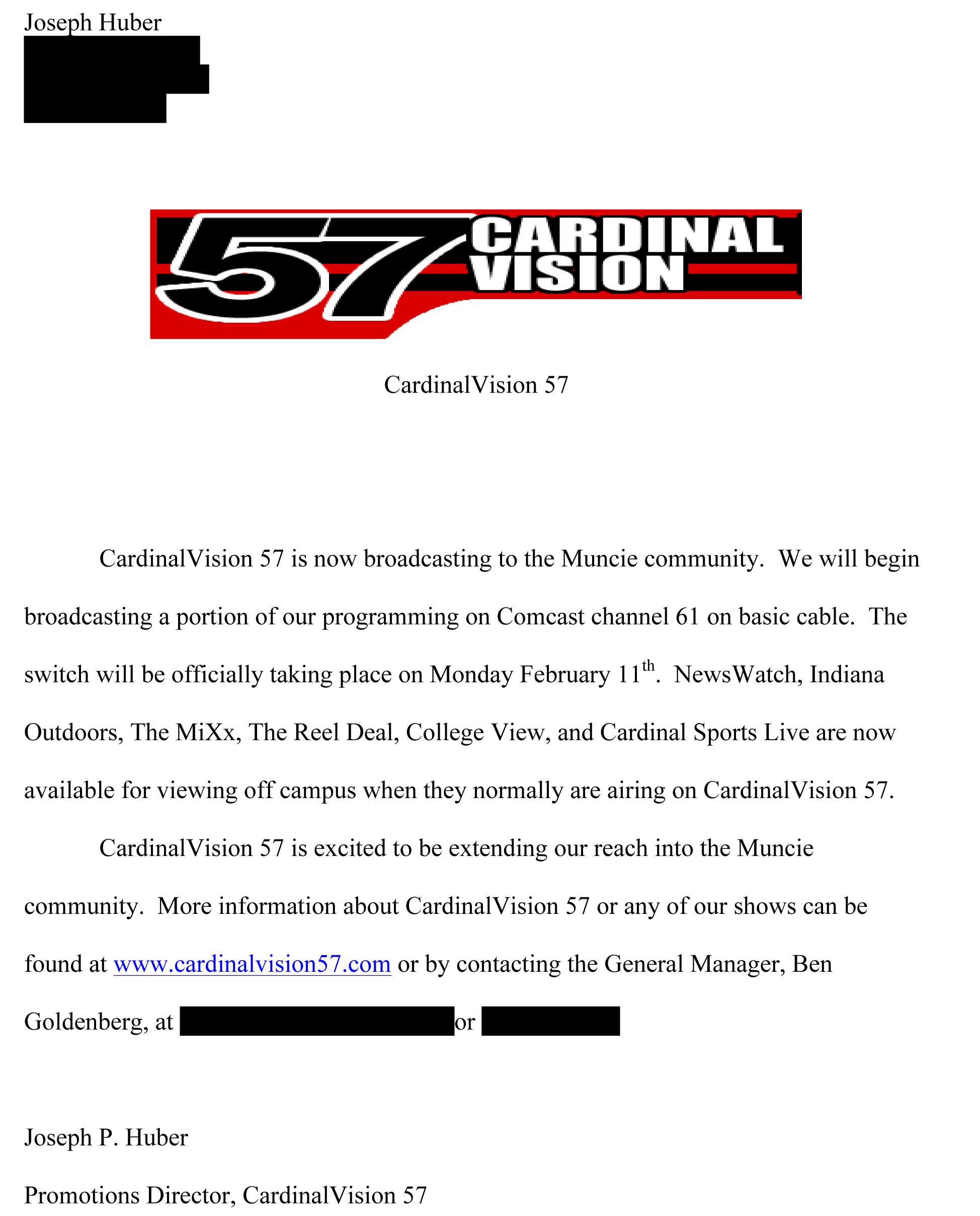 The CardinalVision station underwent some serious changes. Before the logo redo and rebranding of the station was complete, our station manager was able to have the station broadcast beyond Ball State’s campus limits.